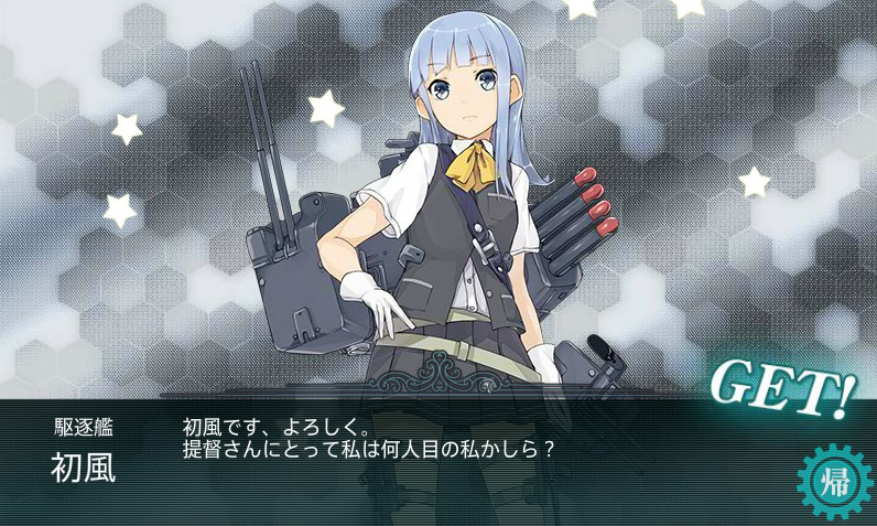 初風は通常海域ではこの3-4ボスでしか引けないからラッキーはラッキーなんだけど、あぁまた母港圧迫される…。